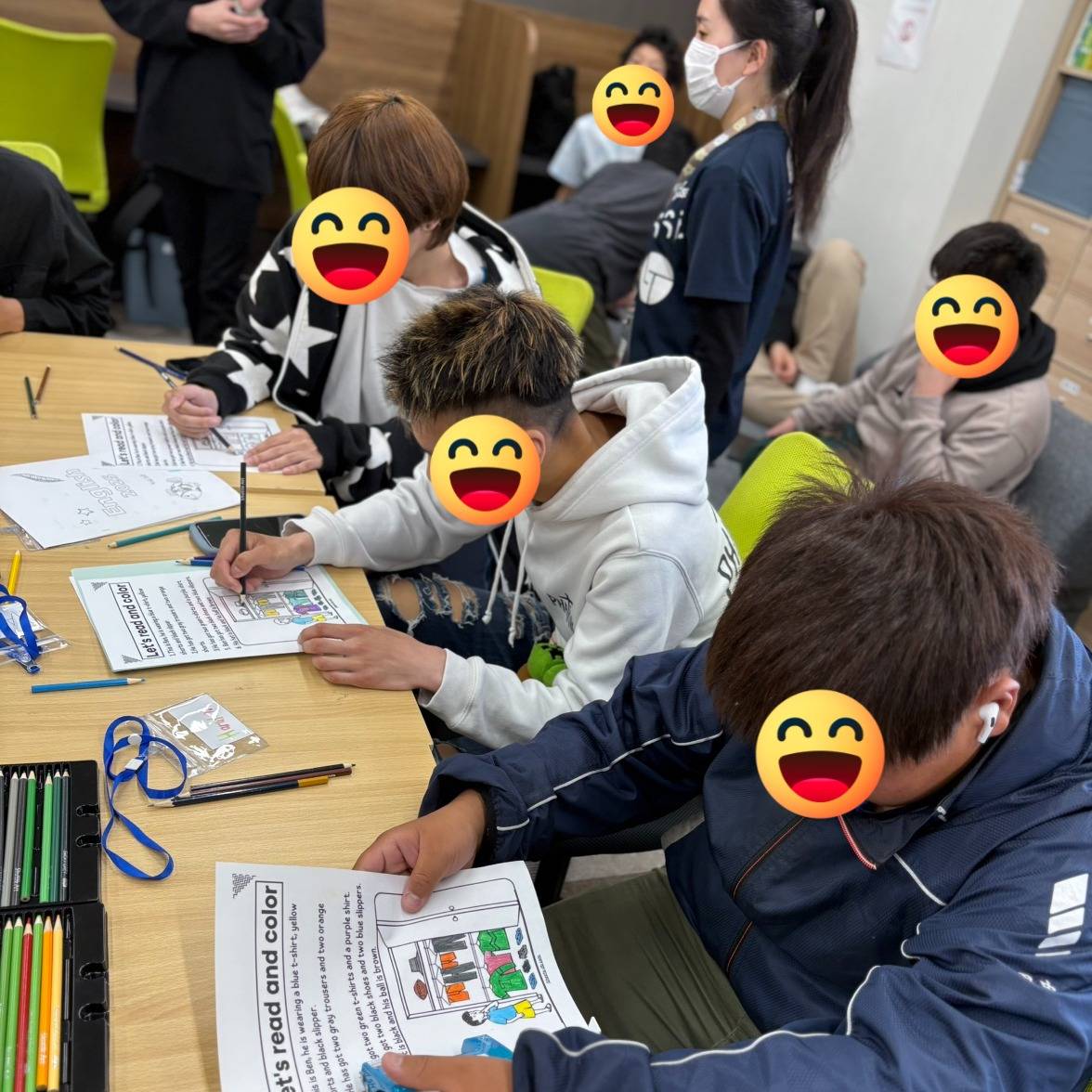 英文を理解しながら色を塗るのは少し難しく、途中で手が止まりそうになる場面もありましたが、完成した生徒が他の生徒に声をかけるなど、自然と助け合いの姿も見られました。